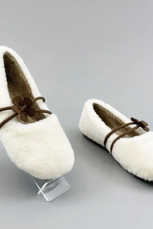 Square Head Plush Warm Flat Bottomed Cotton Shoes With Flowers Women Flat Shoes