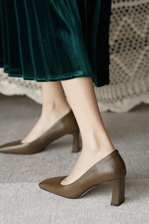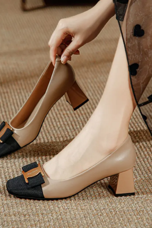 Nude PU Leather Casual Office Ladies High Heels Pump Bridal Shoes