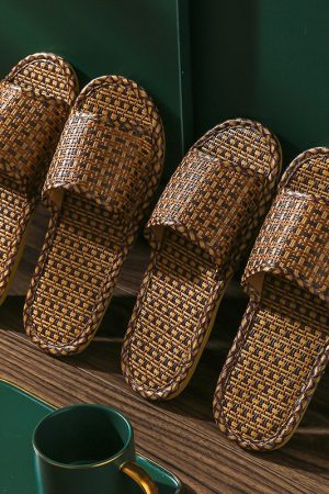 Summer couples stay at home indoor silent woven slippers