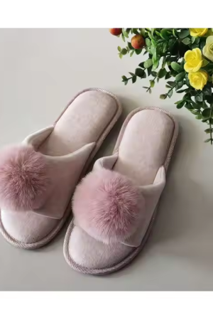 Velvet Imitation Rabbit Hair Ladies Slipper