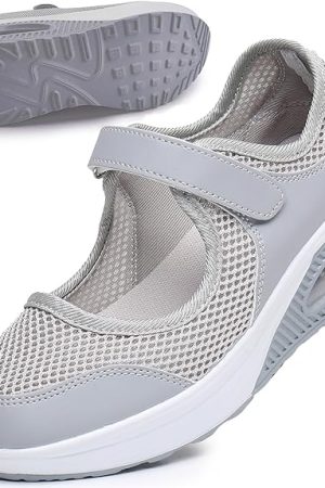 Women adjustable breathable walking gray woven shoes