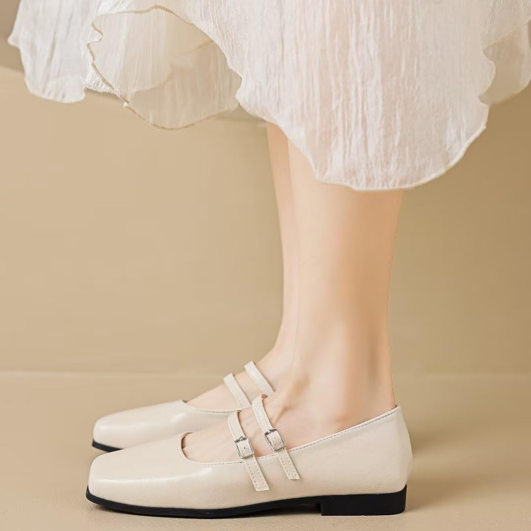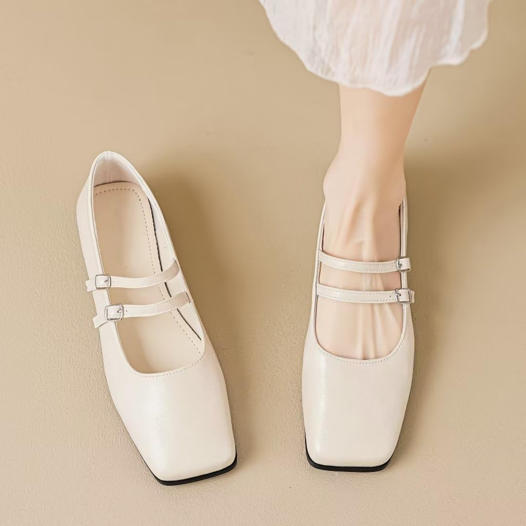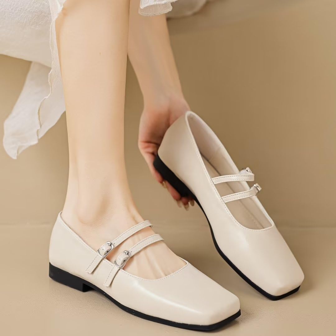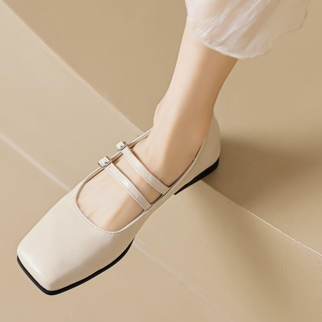 The classic square toe flat shoes feature an anti slip and wear-resistant sole