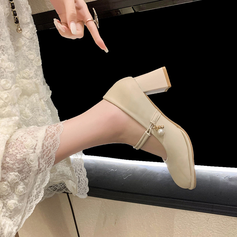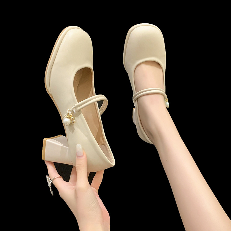 Be the first to review “Off white evening breeze small leather thick heel high heels”