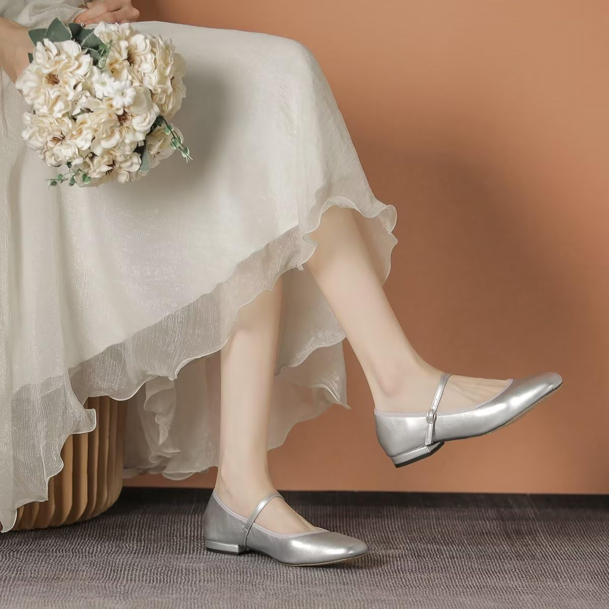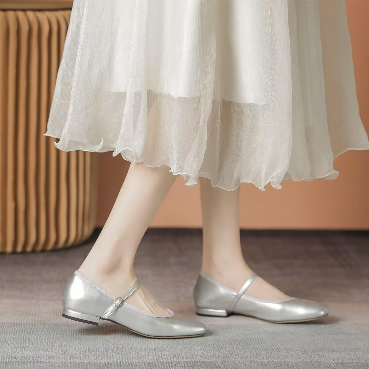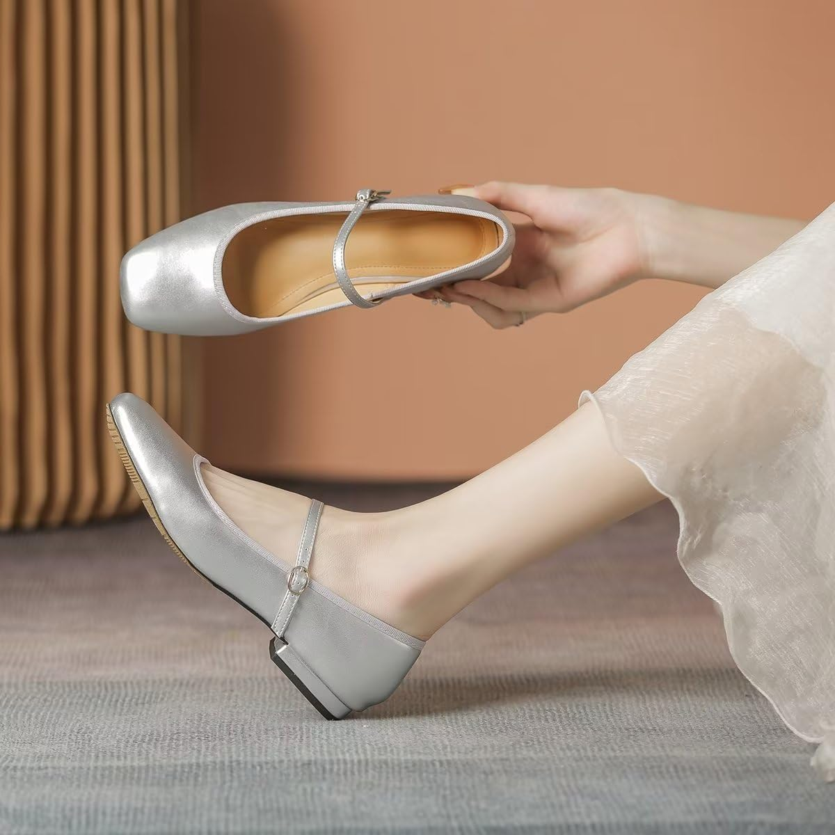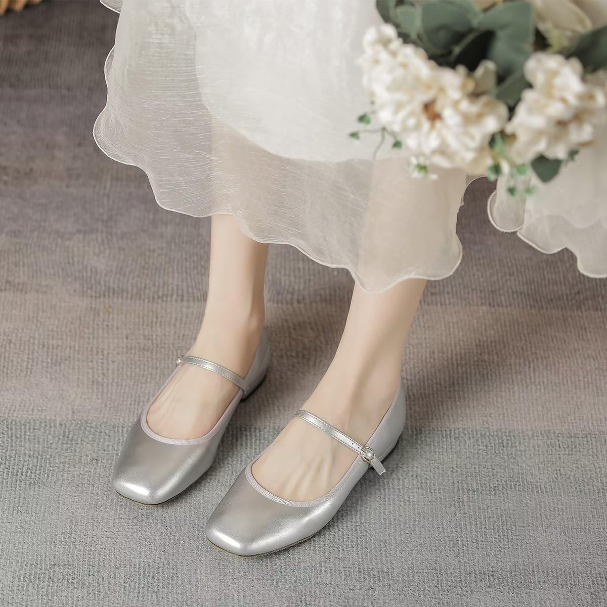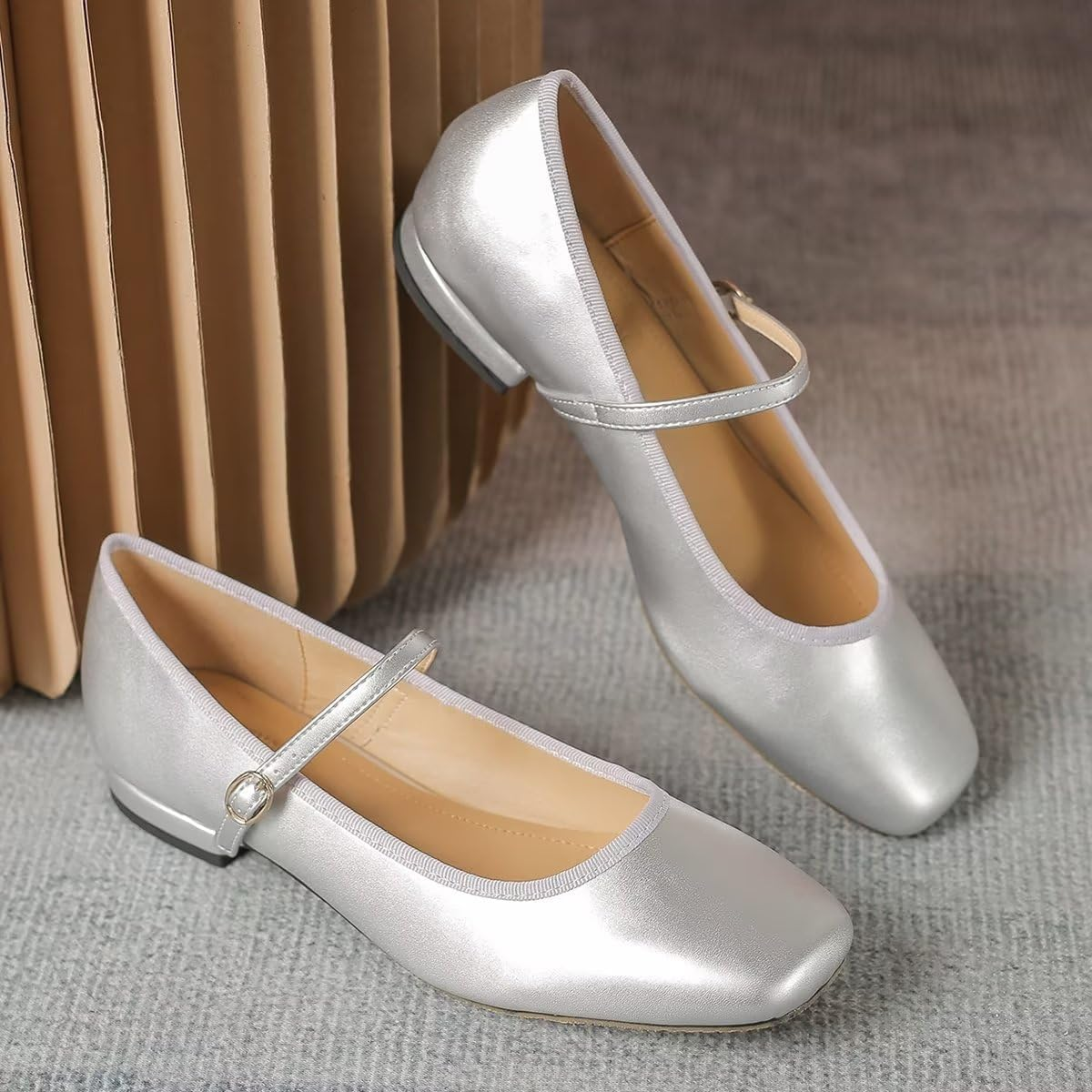 Classic square toe mary Jane flats without additional decoration,simple but stunning