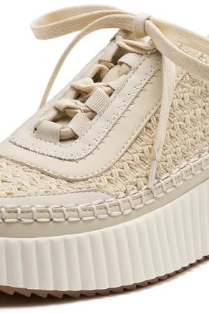 Women lace up woven beige shoes
